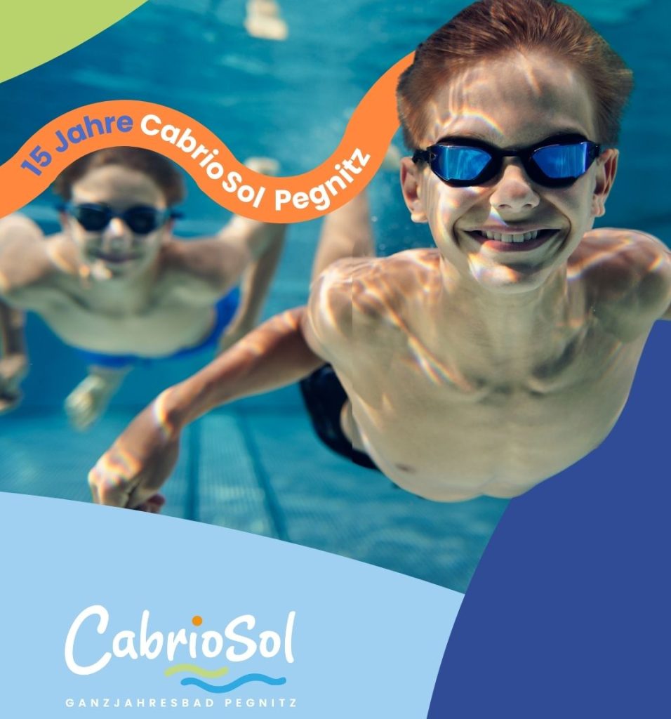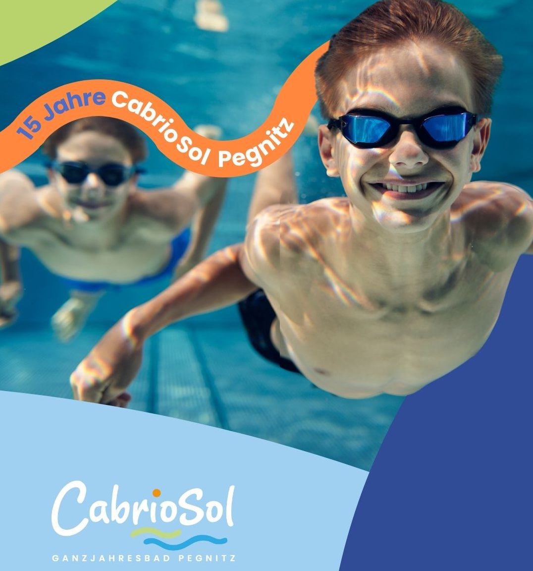 Zum 15-jährigen Bestehen des CabrioSol laden wir Sie herzlich zu einem besonderen Tag ein: 15-Stunden-Schwimmen & Tag der offenen Saunatür  – unterstützt von den Schwimmfreunden Pegnitz von 1973 e. V.