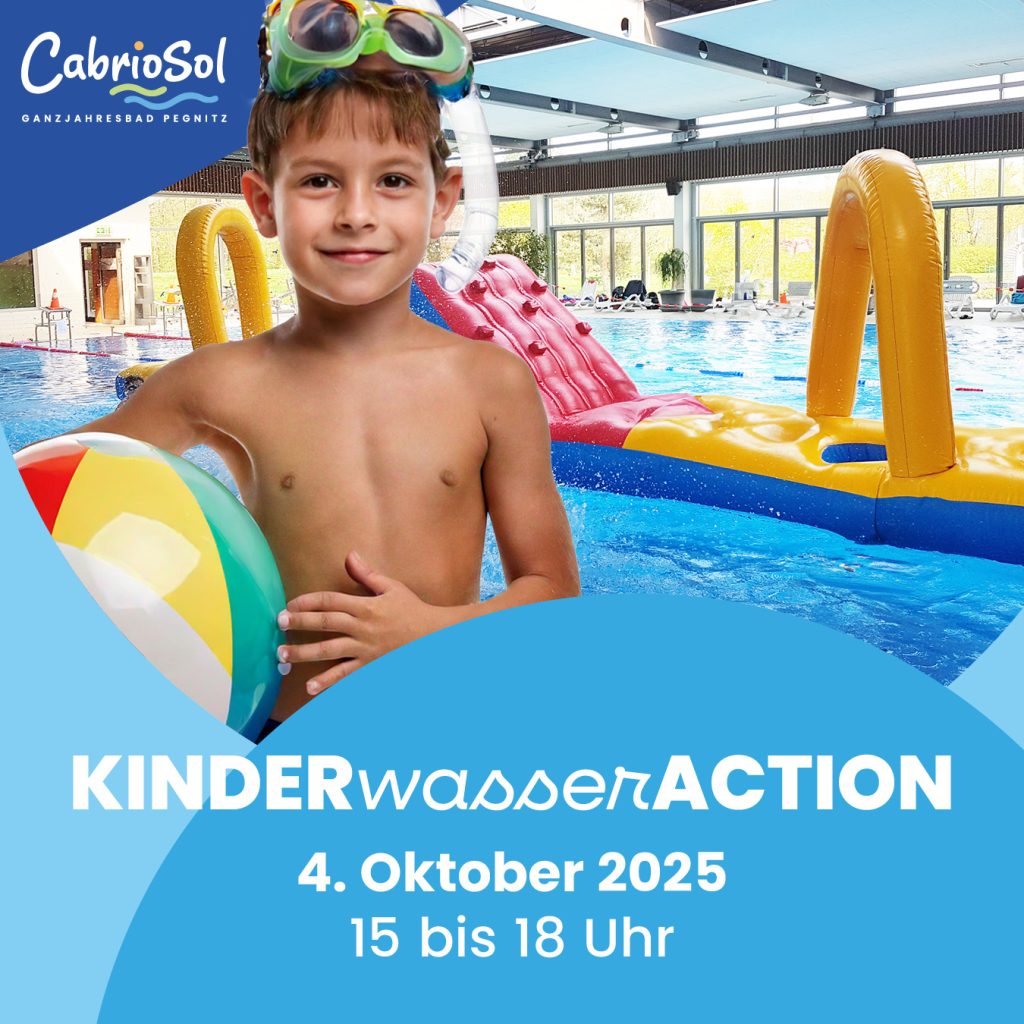 Unser lustiger Wasserdrache Cabriolino lädt euch, liebe Kinder, zu drei Stunden voller cooler Spiele, spritziger Abenteuer und jeder Menge Spaß ein – hier bleibt garantiert kein Kind trocken! Also Badehose schnappen und ab ins Wasser! Wir freuen uns auf euch!