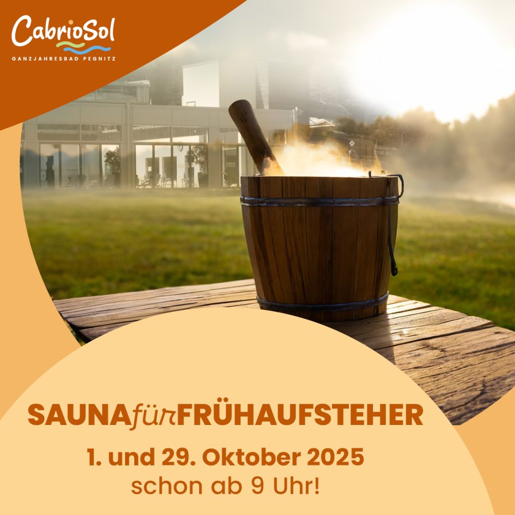 Früh raus – ab in die Sauna! Mittwoch ab 9 Uhr gehört die Saunawelt den Frühaufstehern. Wer schon wach ist, kann auch gleich genießen: Heiße Aufgüsse, chillige Atmosphäre und ein kleines Frühstück vom Gastro-Team warten auf euch. Perfekt, um mitten in der Woche kurz abzuschalten – und danach mit frischer Energie weiterzumachen.
